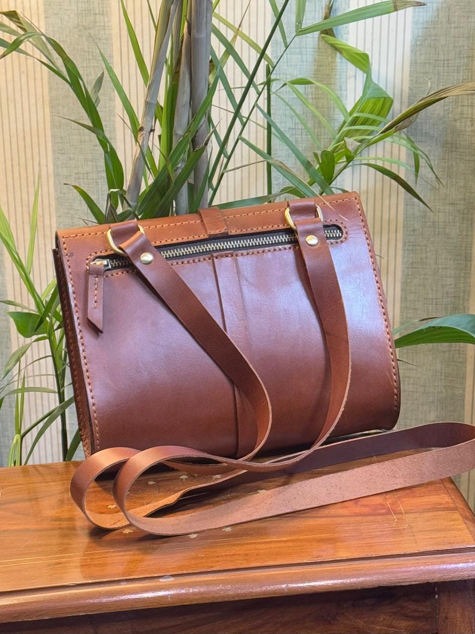 Crafted with precision and care, this handmade bag is a perfect blend of style and functionality. Made from 100% top-grain pull-up leather, it features: