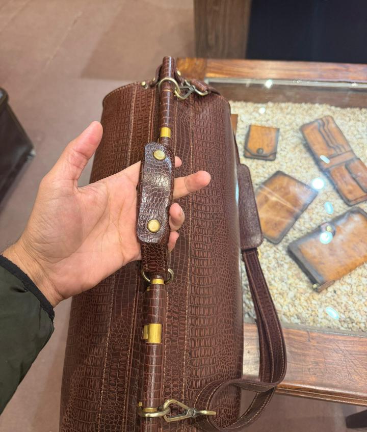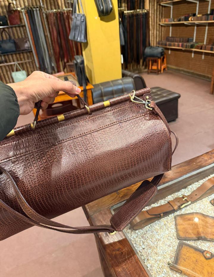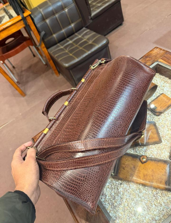 Experience timeless craftsmanship and refined style with this handcrafted brown croc-embossed leather duffle bag. Designed for modern travelers and professionals, this bag blends luxury, durability, and practicality in one elegant piece.