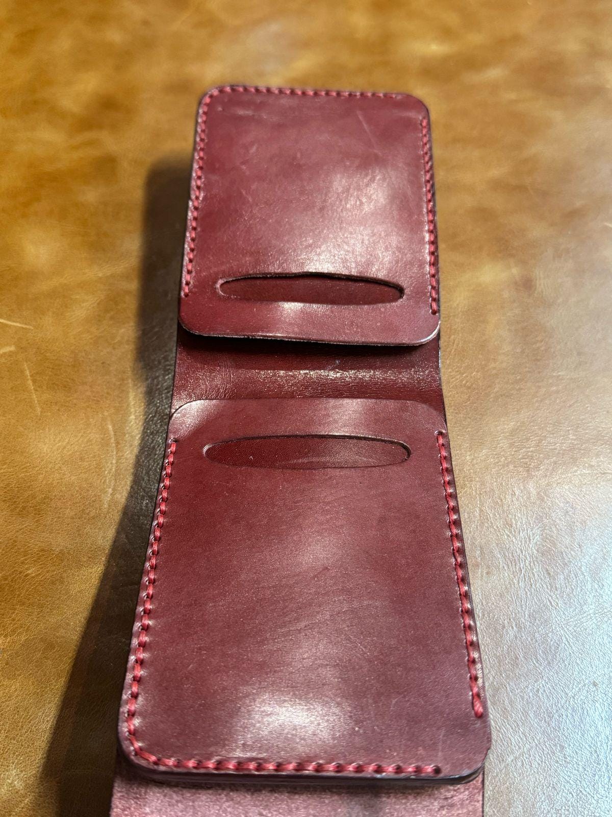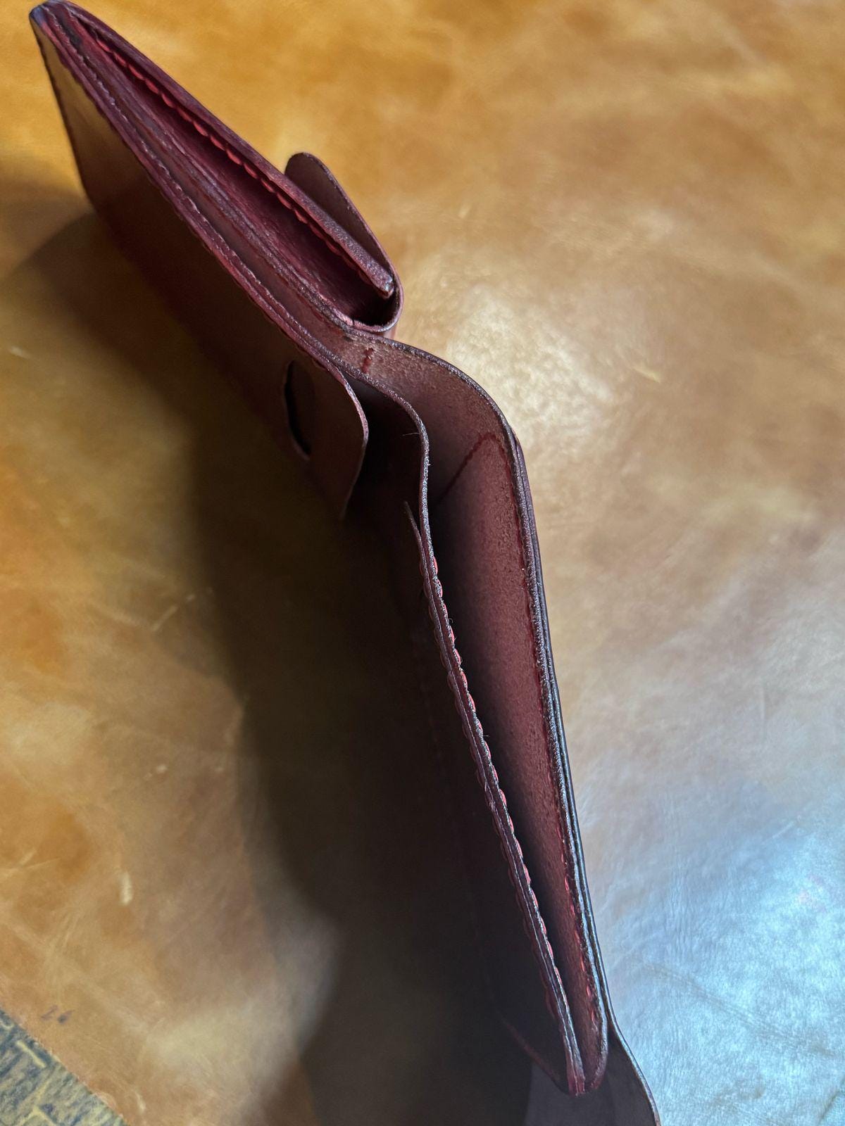 This 100% handmade vegetable-tanned leather wallet is crafted with care using high-quality veg-tan leather. The natural leather develops a beautiful patina over time, making each wallet unique and long-lasting.
