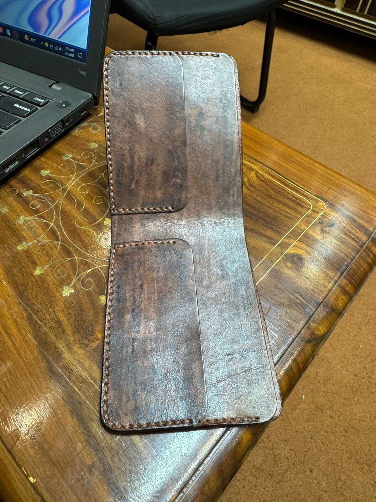 This premium handmade vegetable tanned leather wallet is crafted with care and durability. The wallet is made from 100% genuine vegetable-tanned leather, giving it a natural look that develops a beautiful patina over time.