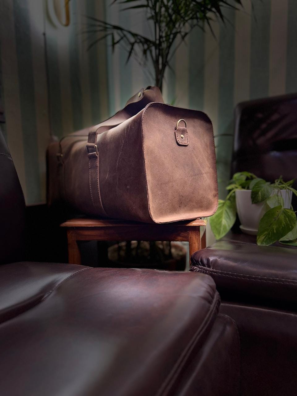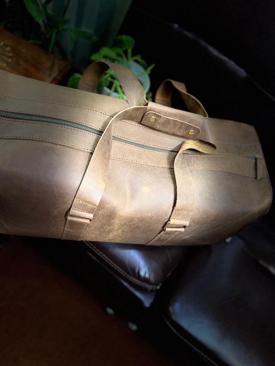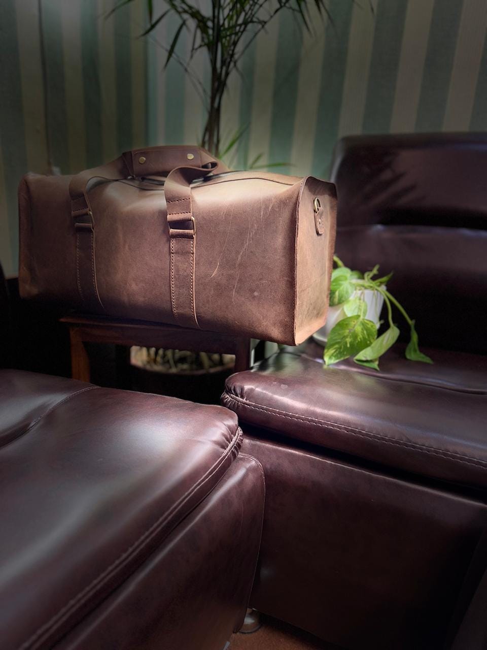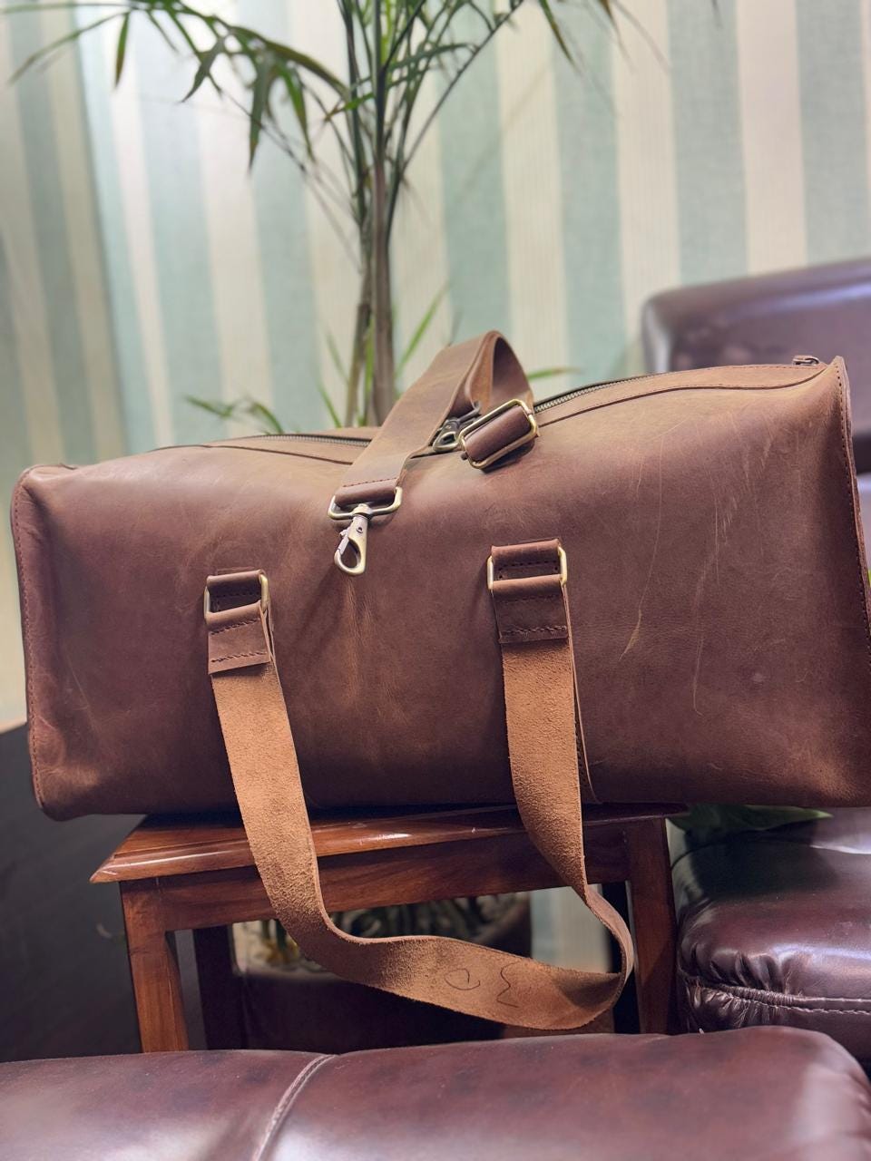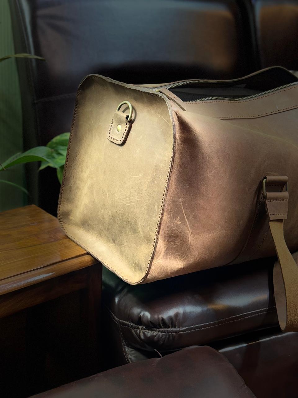 Travel in style with this handmade brown wax pull-up leather duffle bag, crafted for durability and elegance. Perfect for weekend trips, gym visits, or business travel, this bag is designed with a single spacious compartment to carry all your essentials securely.