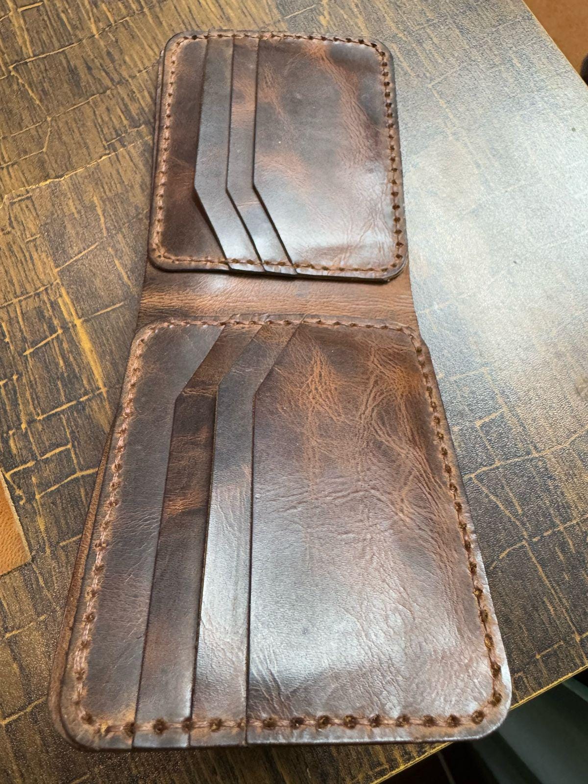 Crafted with precision and care, this handmade brown wax pull-up leather wallet is designed for durability, style, and everyday convenience. Its rich brown tone gives a classic and timeless look, while the wax pull-up leather develops a unique patina over time.